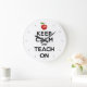 Dear Teachers. Thank you for all the wonderful, creative, important, often difficult work you do. We can’t say it enough. We need you and value your many talents. This design with an apple for the teacher is a loving encouragement to take a deep breath, Keep Calm and Teach On!