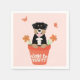 Fun illustration for spring and summer for all the dog lovers. Showing an Australian Shepherd popping out of a flower pot surrounded by two flowers and butterflies.