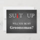 This 5" x 7" beautiful time to suitup Black Chalk Board with white tie invitation card. This is best for the groom. If you looking at asking someone to be your groomsman for your future wedding, then why not choose this groomsman cards. This customized invitation card will make your friend, brother, cousin, nephew, son or whoever else you choose feel that extra special. This invitation is easily personalized by clicking on the customize it button under the image where you will be able to change the text, font and size. You can invite your best buddies in style with these classy invitations. It is suitable for the Best Man or for Groomsmen. Send them this groomsmen card.