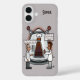 A phone case with a funny cartoon about time travel. The background, image and text can be personalized. Original artwork by DBcartoons.