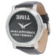 Arrived today. Beautiful watch just like it appears on the website! Printing is exactly as the template I created and asked for.