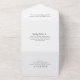 Elegant all in one wedding invitation featuring a simple design with your event details in serif and script fonts. Attached RSVP card includes meal choices for your guests.