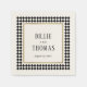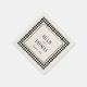 Chic and timeless, these off-white cocktail napkins feature the couple's names and wedding date within a border frame of black and white chequerboard squares and a simple golden square harkening back to the early 20th century aesthetic of art deco and the prohibition era speakeasy style.
