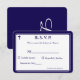 Design front features the traditional format for a wedding response card displayed in a navy-blue font against a white background. The image of a cross is displayed at top corner. Entire design is framed by an elegant navy and white border.