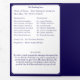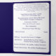 Interior is of a white background with navy-blue border. With explanations of the Mass displayed throughout, this elegant design also includes the name of the wedding officiant, names of altar servers, names of the parents of the bride and parents of the groom, wedding party names including the names for a maid-of-honor and best man, room for up to seven bridesmaids and groomsmen names, plus the names of the flower-girl and ring bearer. In addition, design of back cover features your text, a bible verse (or your message) and a prayer request for the happy couple against a navy background. All text is customizable. Designed to coordinate with the "Timeless Catholic Monogrammed Wedding Suite" collection.
