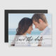 Stylish save the date photo announcement featuring a transparent white banner with elegant modern calligraphy script saying "Save the Date". Magnet.