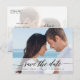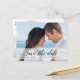 Stylish save the date photo announcement featuring a transparent white banner with elegant modern calligraphy script saying "Save the Date". Postcard.