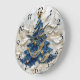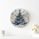 A beautifully crafted clock captures the essence of Christmas, featuring a festive tree adorned with blue and gold ornaments.