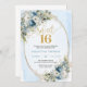 Timeless Dusty Blue Floral Sweet 16th Birthday Invitation