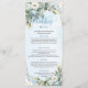 Timeless Dusty Blue Floral White Gold Wedding Menu