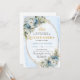 Timeless Dusty Blue Gold Greenery Quinceañera Invitation