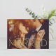 Share your happy news in luxurious style with this timeless gold serif photo wedding announcement. Oversized metallic gold typography spells "Married" across your full-bleed photo, creating a striking and celebratory look. Names and established date are displayed above in elegant script. The back features a second photo and a customizable letter about your private ceremony. Personalize every detail to make it your own.