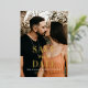 Announce your wedding in style with these timeless "Save Our Date" announcement cards that feature your portrait engagement photo with a bold gold foil serif typeface overlay design. Includes a second space for a landscape engagement photo on the back and wording that can be personalized with all of the important details.