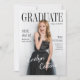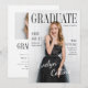 Magazine style graduation announcement and invitation feature elegant graceful serif and script name with photos, more grad party details on the back, sophisticated and timeless, Custom it with your own photos and information.