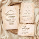 A luminous celestial design featuring delicate crescent moons and scattered constellation stars across a warm parchment background. A refined gold border frames the composition, while elegant script typography creates a graceful focal point worthy of such a meaningful milestone. The soft ivory and champagne tones give the entire piece a timeless, radiant glow. Perfect for a quinceañera celebration that feels romantic, elevated, and touched by starlight.