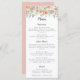 Delight in a menu that reads like a chapter of your love story, framed by lush greenery and floral motifs in soft pastels, ensuring a taste of your romantic journey.