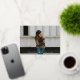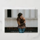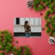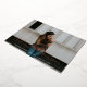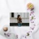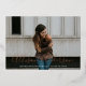Elegant graduation announcement featuring the graduate's horizontal photo and graduate's name in a real rose gold foil calligraphy script overlay. Personalize the photo graduation announcement by adding the school name and graduation year. The announcement reverses to display a white trellis pattern and black background or colour of your choice.