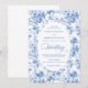 Make a refined first impression with this wedding invitation featuring classic French toile de jouy roses in elegant shades of navy blue, royal blue, dusty blue, and deep blue. Inspired by timeless European floral design, this invitation blends traditional sophistication with modern elegance, perfect for a classic, romantic, or formal wedding celebration.