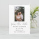 Capture the essence of timeless elegance with our beautifully designed Save the Date card, perfect for modern couples planning their dream wedding. This customizable template features a chic black and white design, with a hand-drawn bow framing your favourite photo, ensuring your special announcement stands out. The stylish script "Save the Date" along the side adds a touch of sophistication, while the simple and clean layout keeps the focus on your love story. Personalize with your names, wedding date, location, and website for a seamless and memorable invitation. Ideal for brides and grooms who appreciate understated elegance and contemporary design.