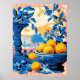 Timeless Still Life with Oranges and Blue Foliage Poster