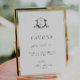 Elegant botanical adorned vintage style wedding monogram crest in black and white, wedding favour sign poster.