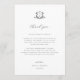 Elegant botanical greenery adorned vintage monogram crest in black, wedding reception thank you card.