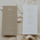 Elegant greenery adorned crest, wedding program hand fans. Modern and timeless monogram wedding crest with trendy minimalist typography template.