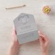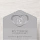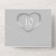Tin wedding anniversary party event, detachable RSVP, and no envelopes required invitation design. Pitted tin effect in a heart shape printed graphics 10 years wedding anniversary invitations, personalize with your own wedding anniversary party details. The tenth wedding anniversary is traditionally associated with tin and the heart symbolizes love. Other matching items are available. Graphics and design by Sarah Trett for www.mylittleeden.com and www.mylittleedenweddings.com
