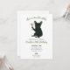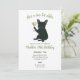 This customizable birthday invite features a watercolor style portrait of a black french bulldog holding a dirty martini with the caption "she's a tini bit older".