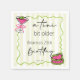 Tini bit older handrawn retro birthday party personalized napkins template, pink and green retro birthday party personalized napkins, wavy border coquette cake adults party personalized table decor printed napkins