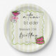 Tini bit older handrawn retro birthday party personalized paper plates template, pink and green retro birthday party personalized paper plates, wavy border coquette cake adults party personalized table decor printed paper plates