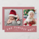 Carte de modèle photo à thème de vacances minimaliste et moderne avec 2 photos de votre nouveau-né sur le devant avec un texte de typographie amusant qui dit "le plus petit noeud". Vous pouvez également ajouter une autre image et un autre message à l'arrière. L'arrière - plan est rose.