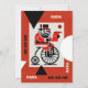 Absurd Visual Design: Includes an illustration of Santa wearing a monocle and riding a monocycle, with a striking red, white, and black colour palette to complement the whimsical tone.