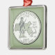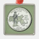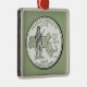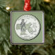Stylish Christmas ornament with a tinted version of the U.S. Mint's Massachusetts State 2000 quarter design image (uncirculated reverse), featuring the likeness of the celebrated Minuteman of the American Revolution, on textured green background