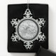 Christmas snowflake ornament features tinted version of the U.S. Mint's Mississippi State 2002 quarter design image (uncirculated reverse), featuring magnolia blooms, on black background