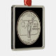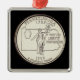 Christmas ornament features tinted version of the U.S. Mint's Pennsylvania State 1999 quarter design image (uncirculated reverse), featuring the statue, Commonwealth, with an outline of the state and their motto, Virtue, Liberty, Independence, and a keystone. on black background
