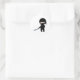 Cute but angry cartoon ninja dressed in black is holding a traditional Japanese katana sword.