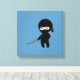 Cute but angry cartoon ninja dressed in black is holding a traditional Japanese katana sword.
