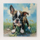 Indulge in piecing together this delightful 20" x 20" puzzle (other sizes available) featuring an adorable Boston Terrier puppy frolicking in a scenic field.