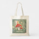 Tiny fairy perched on top of mushroom and glowing tote bag