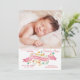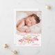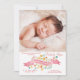 Sweet, delicate flowers and a pink ribbon create a tender photo, birth announcement for a little baby girl.