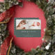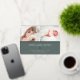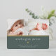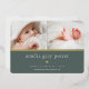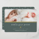 Sweet and elegant birth announcement features two newborn photos aligned side by side, with a band of gold foil beneath. Personalize with baby's name, birth stats, and a family message, adorned with a small gold foil heart on a forest green background.
