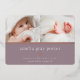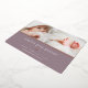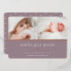 Sweet and elegant birth announcement features two newborn photos aligned side by side, with a band of rose gold foil beneath. Personalize with baby's name, birth stats, and a family message, adorned with a small rose gold foil heart on a dusty purple background.