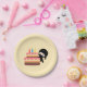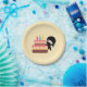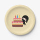 Tiny Ninja Behind Birthday Cake Yellow Paper Plate
