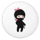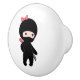Cute cartoon ninja girl is dressed all in black but for a pink bow on top of her head mask. Traditional Japanese sword katana can be seen attached over her shoulder, it’s handle also coloured pink.