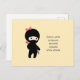 Cute cartoon ninja girl is dressed all in black but for a pink bow on top of her head mask. Traditional Japanese sword katana can be seen attached over her shoulder, it’s handle also coloured pink.