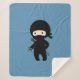 Tiny Ninja Holding Throwing Star on Blue Sherpa Blanket