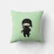 Tiny Ninja Holding Throwing Star On Green Throw Pillow