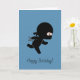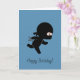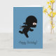 Cute little ninja dressed in black is running while holding a throwing star. Customizable text.