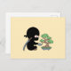 Tiny Ninja Watering Bonsai Tree on Yellow Postcard